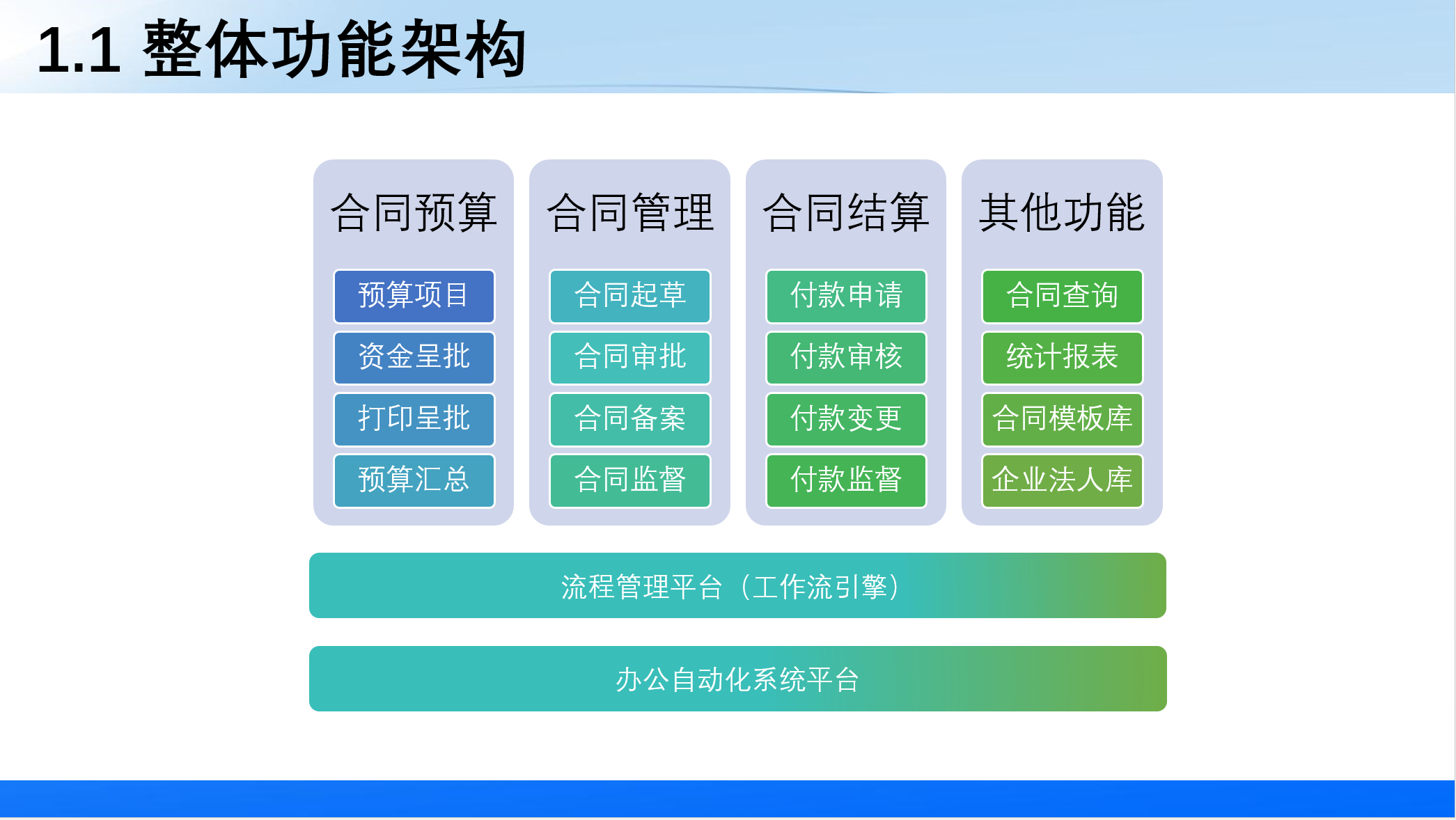 • 办公自动化系统、合同管理系统、档案管理系统、休假管理系统、IT自动化运维平台、企业网站建设、库存管理系统、即时通讯系统、内部邮件系统、设备自动巡检系统等多元化高科技软硬件系统集成研发。
